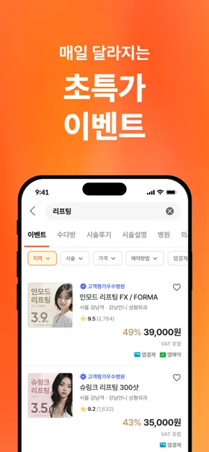 사용자 리뷰, 가격, 시술 전후 사진 등을 참고할 수 있어 성형을 고려 중인 분들에게 매우 유용한 앱입니다.