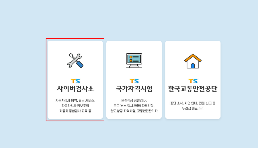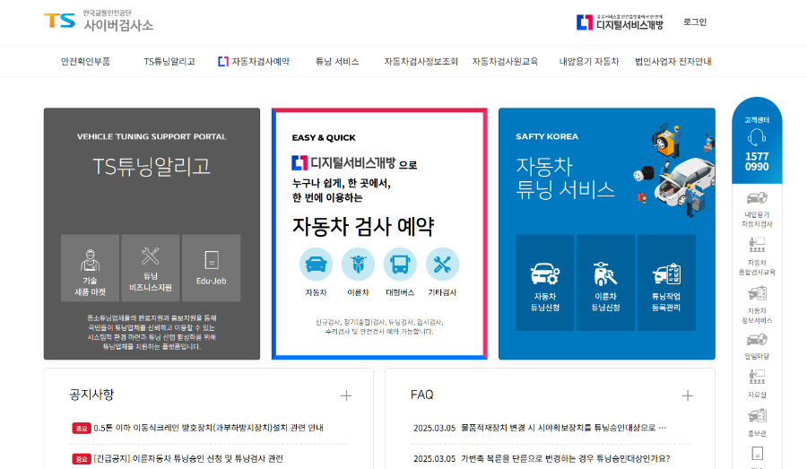 - 한국교통안전공단 사이버검사소 접속: www.kotsa.or.kr