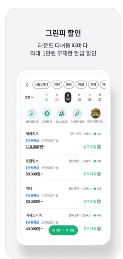 동반자도 5천 원씩 환급! 오픈런, 잔여티 청약도 무료로 이용 가능.