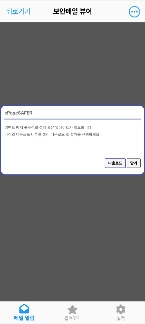 보안 메일을 열기 위해서는 특정 프로그램을 설치해야 하며,