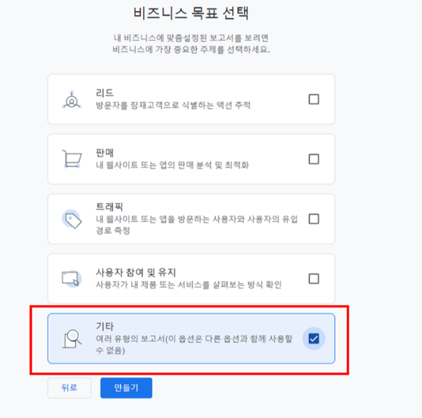 4. 비즈니스 목표: 기타 선택