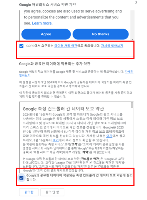 하단의 설정하러 가기 버튼을 클릭하면 구글 애널리틱스 설정 페이지로 이동합니다.