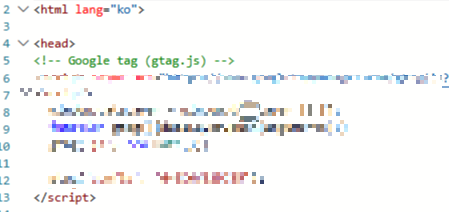 복사한 구글 태그를 <head> 태그 바로 아래에 붙여넣습니다.