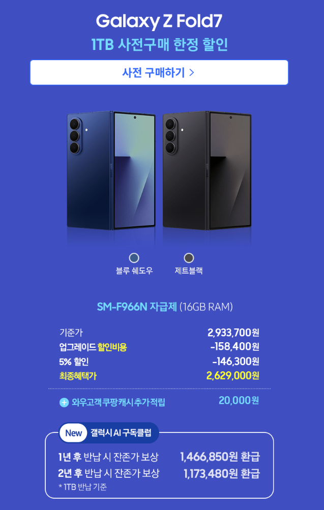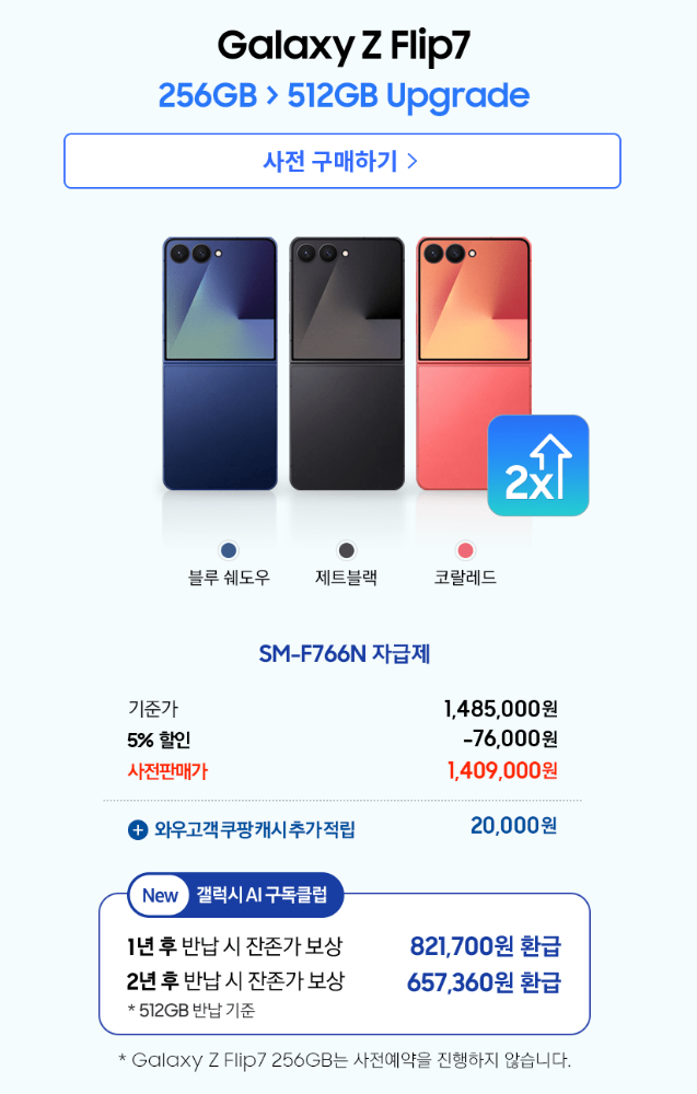 | 갤럭시 Z 플립7 | 2025년 | 256GB | $1,099.99 | 약 1,200,000원 |