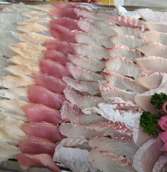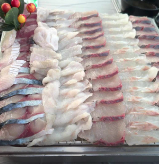 - 오이, 배, 양파 등 채소를 채 썰어 준비하고, 제철 수산물과 잿방어 등 싱싱한 활어회를 준비합니다.