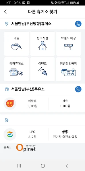- 위치 기반 검색: 현재 위치를 기반으로 주변 휴게소를 빠르게 검색할 수 있습니다.