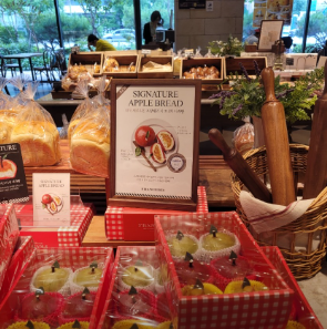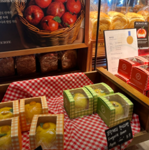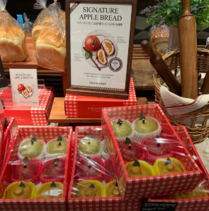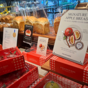 프랑제리 피어 신촌점에서 가장 인기가 많은 시그니처 사과빵 및 과일빵 세트 정보와 가격입니다. (가격은 매장 상황에 따라 변동될 수 있습니다.)
