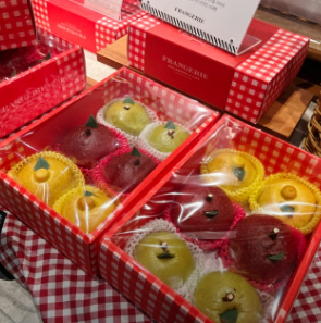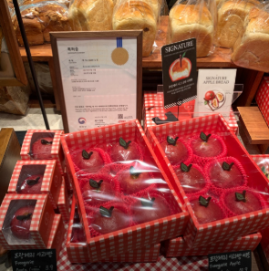 | 프랑제리 사과빵 세트 | 국내산 홍국쌀 반죽, 특제 크림치즈, 사과필링. 시그니처 사과빵 6개입 선물세트 | 25,900 |