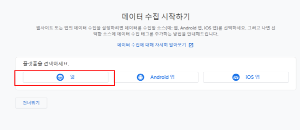 하단의 설정하러 가기 버튼을 클릭하면 구글 애널리틱스 설정 페이지로 이동합니다.